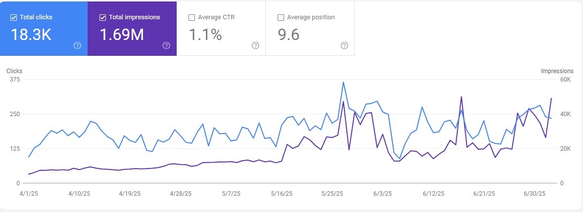 والنتيجة النهائية هي تحول الأرقام بشكل جذري في الظهور من 200 ألف إلى 1.69 مليون، ليظهر المتجر بكلمات مفتاحية في ترتيب الصفحة الأولى من النتائج، وارتفاع الزيارات المجانية 3 أضعاف، وهذا انعكس بدوره بشكل واضح على مبيعات المتجر وتقليل الاعتماد على إعلانات جوجل.