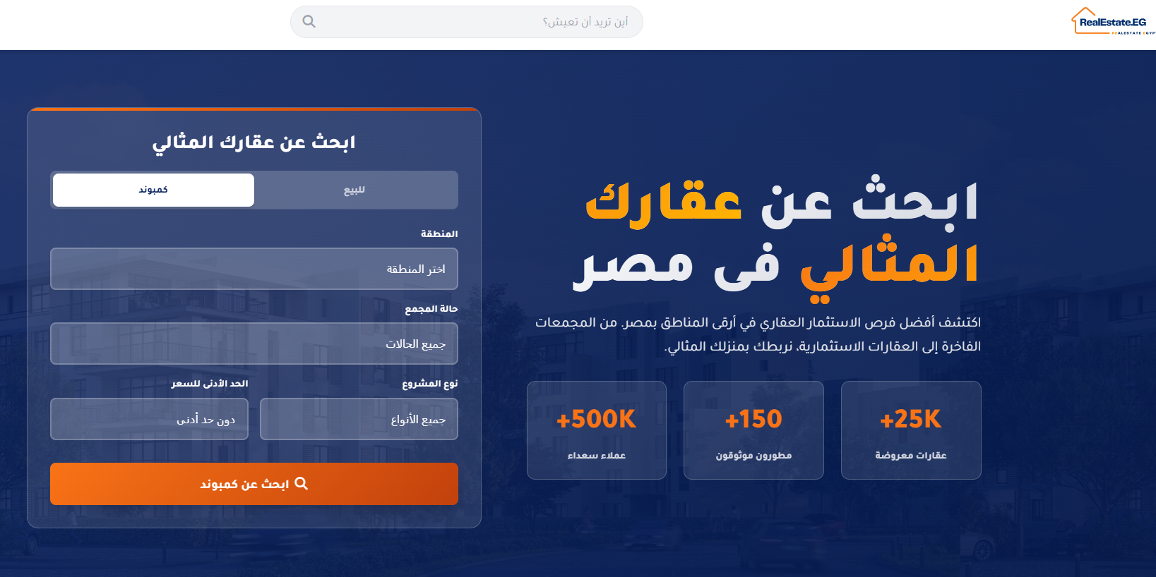 اليوم في 2026 نشارك معكم قصة نجاح موقع RealEstate.eg، التي بدأت بالتحديات التالية: